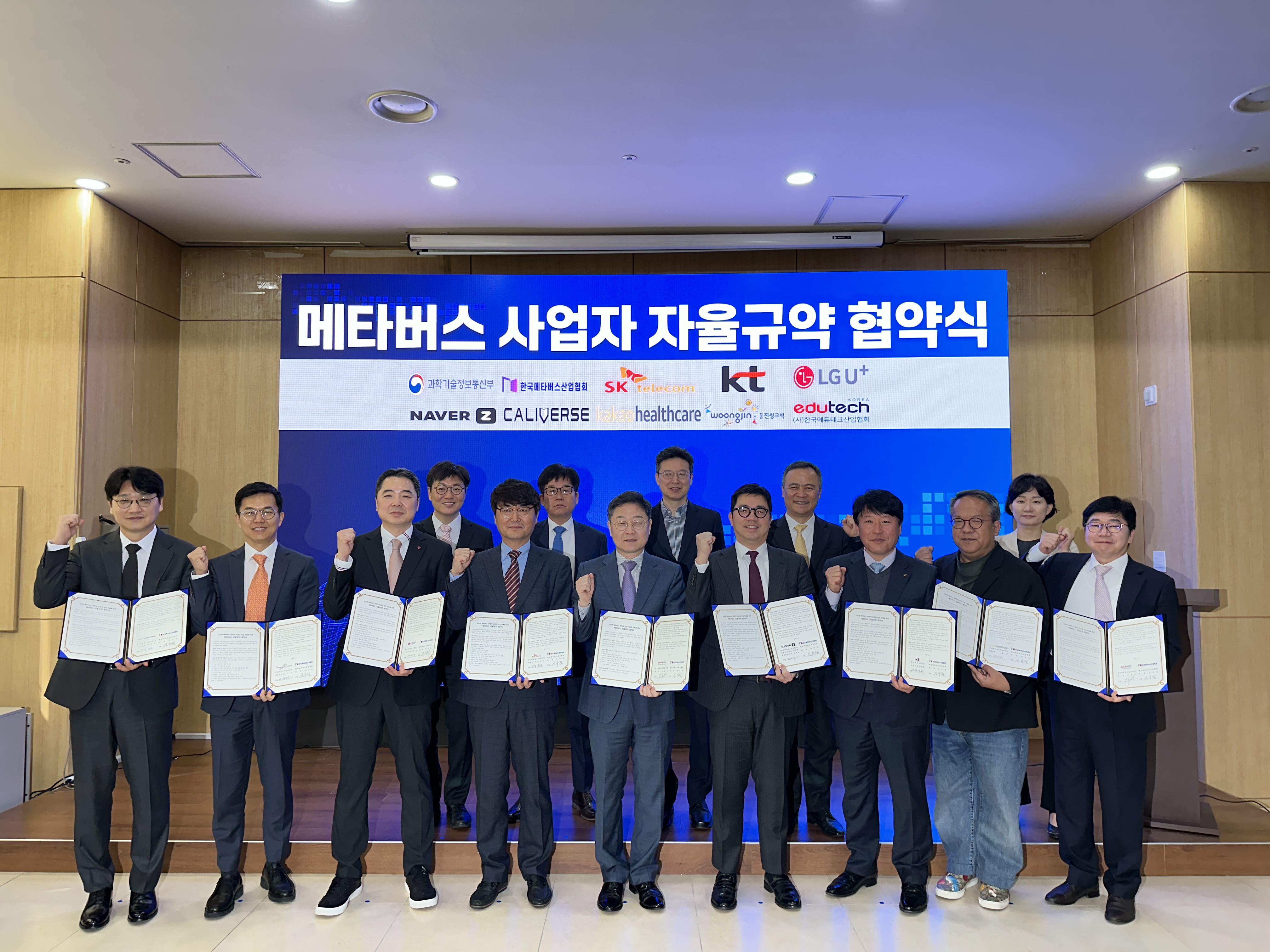 이날 행사에는 과기정통부와 관련 협회 관계자들 외에 SK텔레콤, KT, LG유플러스, 네이버제트, 칼리버스, 카카오헬스케어, 웅진씽크빅등 국내 주요 메타버스 사업자들이 참석했다.